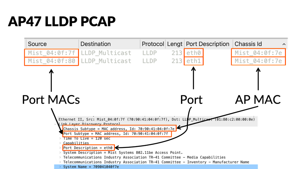The AP47 uses the unique Ethernet port MACs for link-local packets, such as LLDP and Dot1x Supplicant.