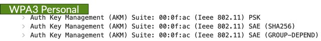 Authentication and Key Management (AKM) type 24 (SAE-GDH) or type 25 (FT+SAE-GDH) with the use of WPA3 Personal