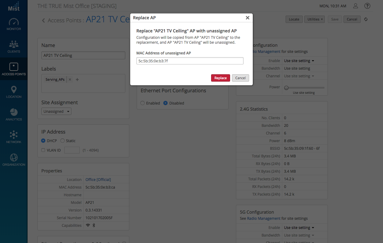 Our Helpdesk Admin role allows limited access to site functions and falls somewhere between an Observer and a Network Admin. This week, we are including additional functionality for the Helpdesk Admin role to better equip its users with a full set of tools useful for troubleshooting network issues. Helpdesk Admins can now use the Replace AP function to help with swapping out APs on their assigned site. This function allows users to copy the entire configuration of an old AP (WLANs, settings, physical locations) onto a new AP.