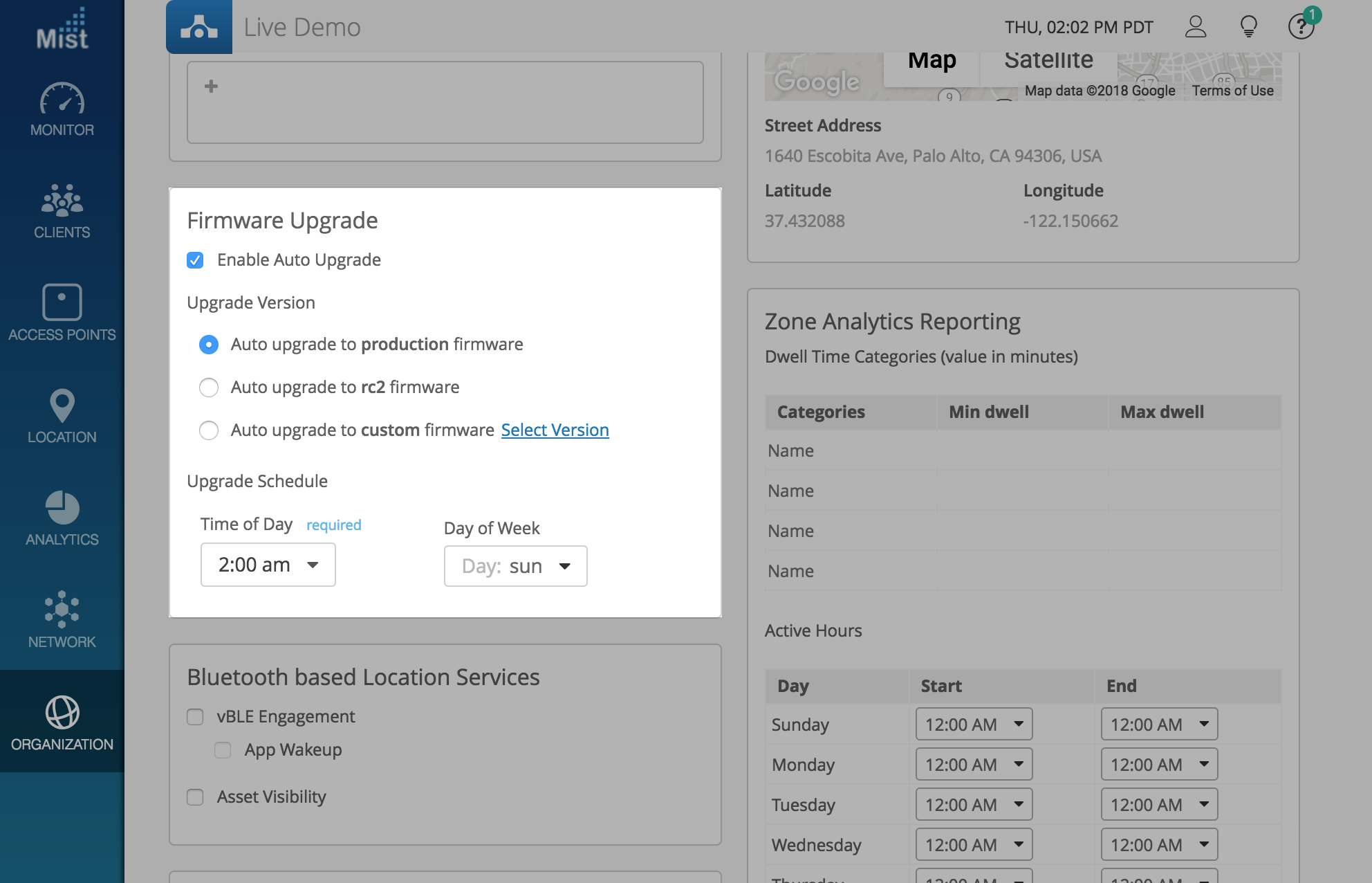 To enable auto-upgrade, navigate to Organization > Site Configurations and select the Enable Auto Upgrade section.