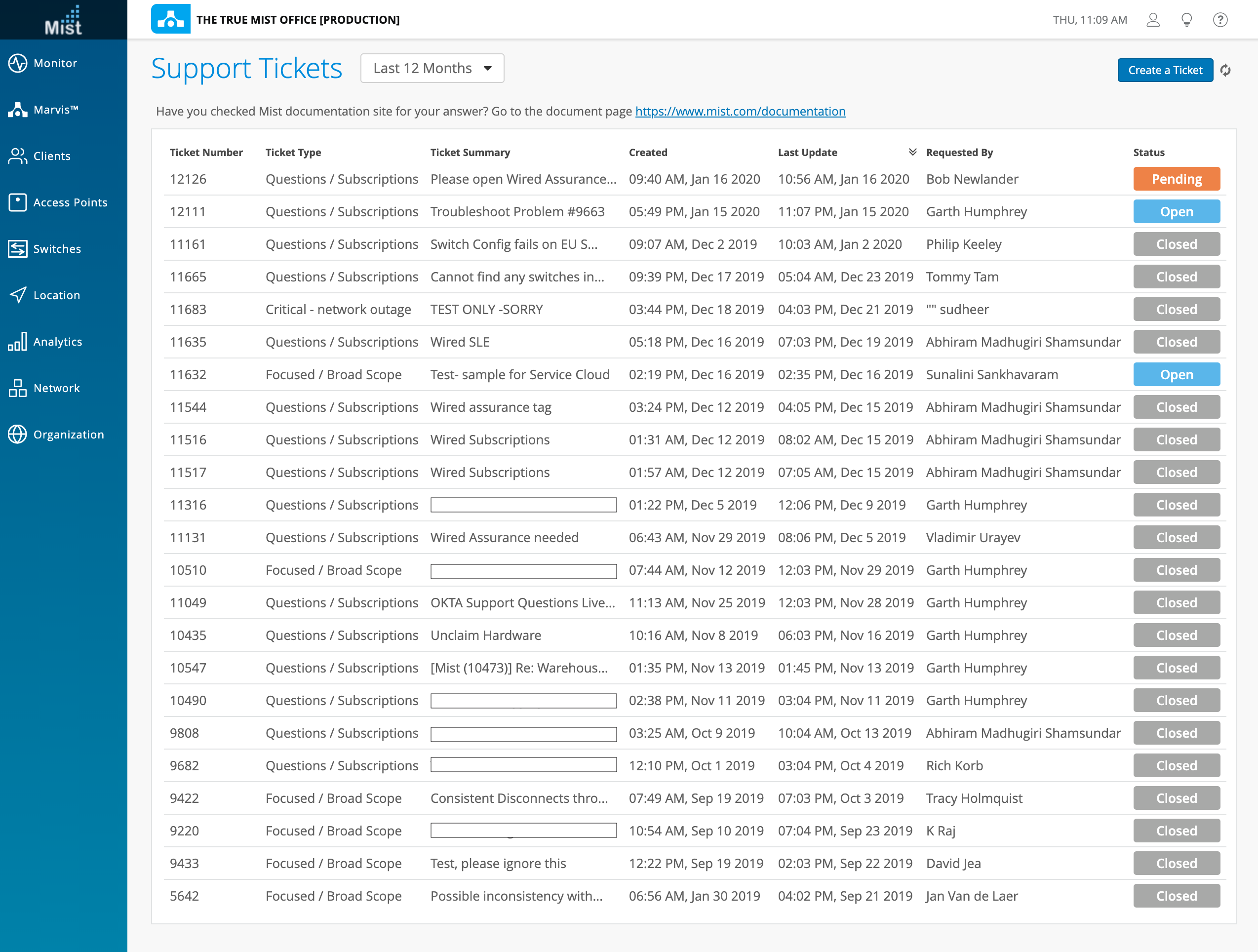 We are making an improvement with the visibility of support tickets by keeping closed/resolved tickets exposed on our UI. You can look for older tickets that have been solved and reference these for solutions given for any previous issues. Access the Support Tickets page by clicking on the “?” on the upper right hand corner and selecting Support Tickets. Here, you will be able to see tickets opened within the past 12 months.