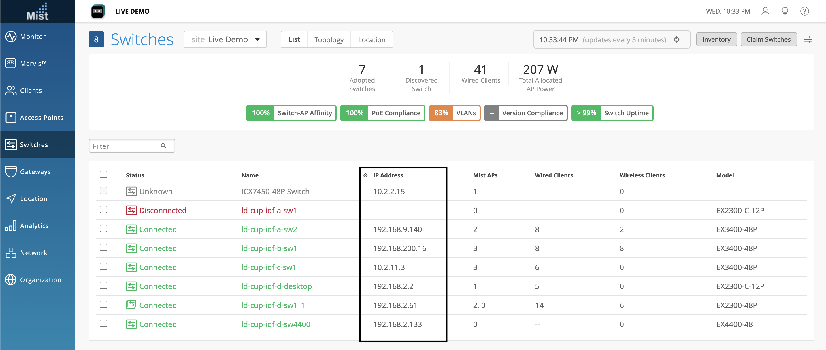 This week we fixed an issue seen on the Switches Page, where the IP Address column in the Switch list view did not match the actual IP Addresses seen in the Switch Details page. Now, these addresses match and are correct on both pages.