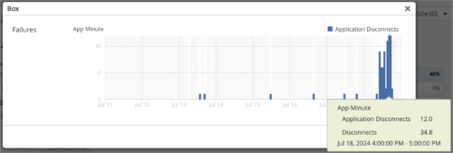 In the following picture, the Application Disconnects field indicates the bad user minute caused by application disconnect events; and the Disconnects field indicates the number of disconnect events observed during the time range displayed.