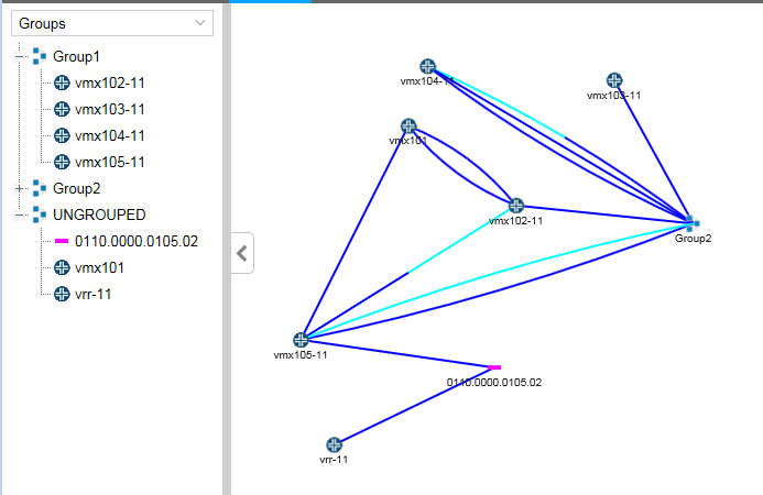 You can create groups of nodes using the topology map and the Layout menu. Once you have groups in your topology, the Groups list in the left pane of the Topology view shows all your node groups, and lists all nodes not included in any group under the heading UNGROUPED.