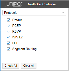 Protocols can be selected or deselected by selecting or clearing the corresponding check boxes. Only network elements that support selected protocols are displayed in the topology map.