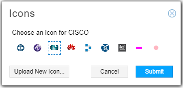 You can right-click on a node type and select Properties to choose the icon that will represent that node type in the topology map. You can also upload your own icon from there.
