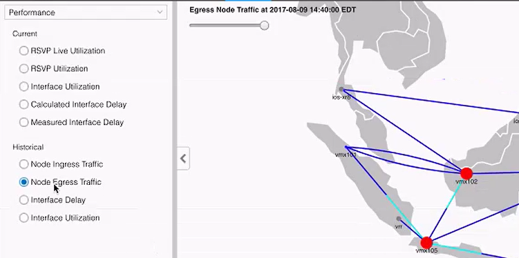 Under Performance, you have the option to display on the topology map current (live network) or historical (analytic traffic collection) data as shown in Figure 7.