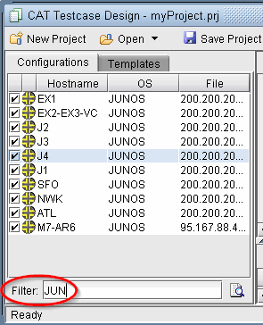 The Filter field can be used to filter on the hostname, OS, or file name. To reset the filter and show all configuration files, enter wildcard * or leave the field blank and press <Enter>.