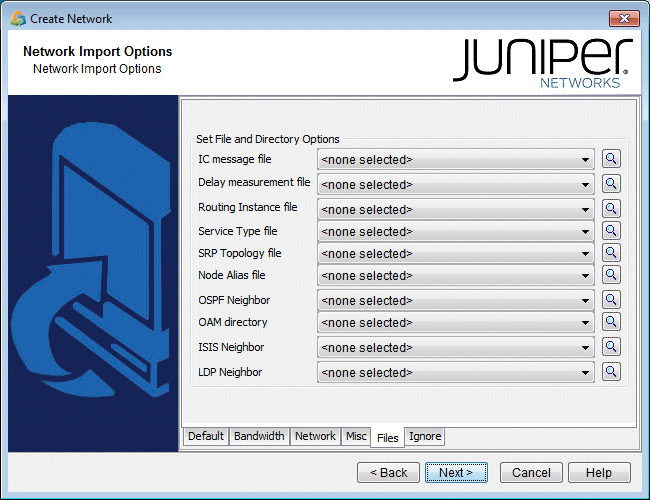 Note:At this time, incremental configuration import is not supported. If you import over an existing network model (i.e. you use the same runcode), you must specify the location where the entire set of configuration files are located, not just a subset. Alternatively, you can perform the new import into a new NorthStar Planner network project (corresponding to a different specification file and runcode), and then use File > Load Network Files to read in NorthStar Planner files (such as the graphcoord file) from a previous import or network project. After doing so, be sure to save your new network project (File > Save Network...).