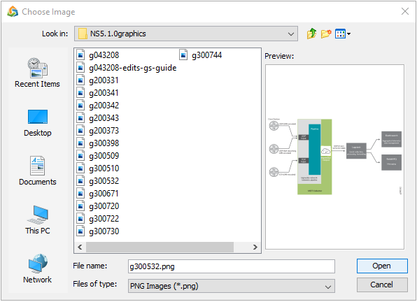 Click Open to complete your selection. The image appears in your topology window.