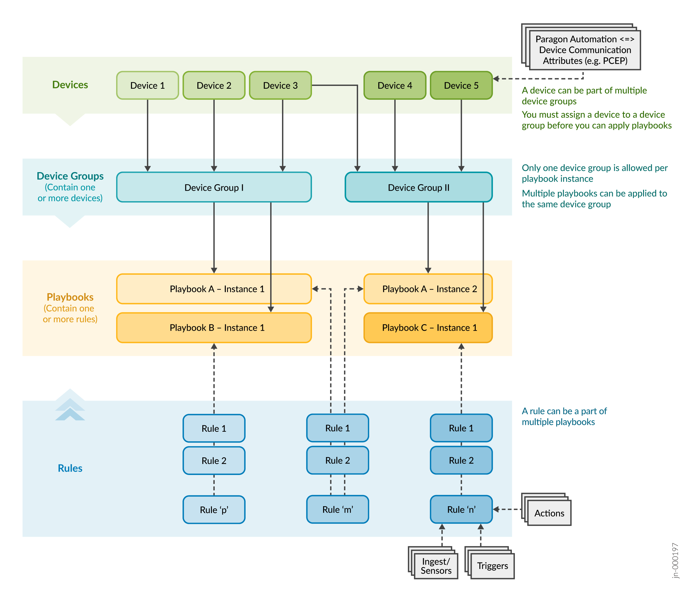 For details, see the Playbooks and Rules chapters in the Paragon Automation User Guide.