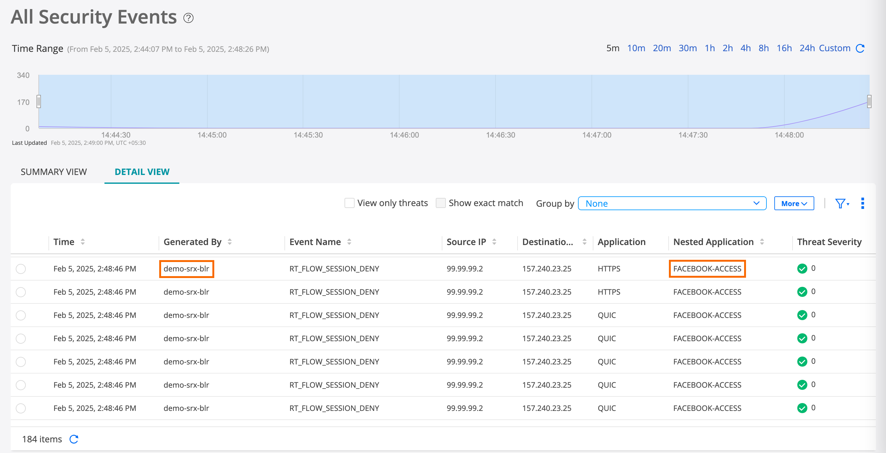 - Wide monitoring coverage—Provides granular control over applications, including video streaming, peer-to-peer communication, social networking, and messaging. AppID also identifies services, port usage, underlying technology, and behavioral characteristics of applications. With this visibility, you can block evasive applications inline at the SRX Series Firewall.