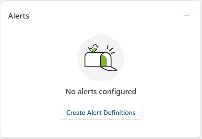 the number of alerts. For example, when you filter the data to the last 14 days, the graph displays data divided into seven equal intervals of two days each. If alert definitions were not created, no alert information is displayed and you are prompted to create alert definitions. When you click Create Alert Definitions, you are redirected to the Alert Definitions page. See Create and Manage Alert Definitions. |