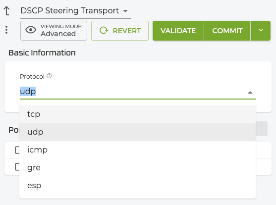 dscp-steeringat the network-interface level supports several port ranges, but only a single protocol. For example, it is not currently possible to perform steering for both TCP and UDP at the same time. - The tunneled packets must either be an ESP packet or have a valid L4 header that accurately describes the tunnel endpoint.