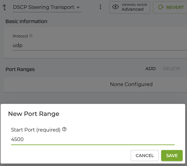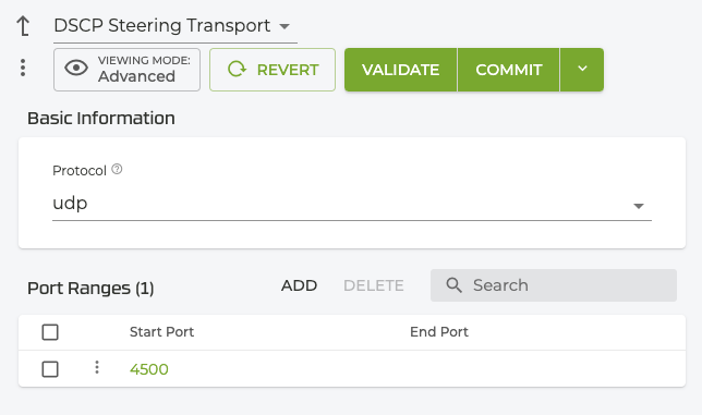 - Enable DSCP Steering, and select the DSCP Steering Transport button.