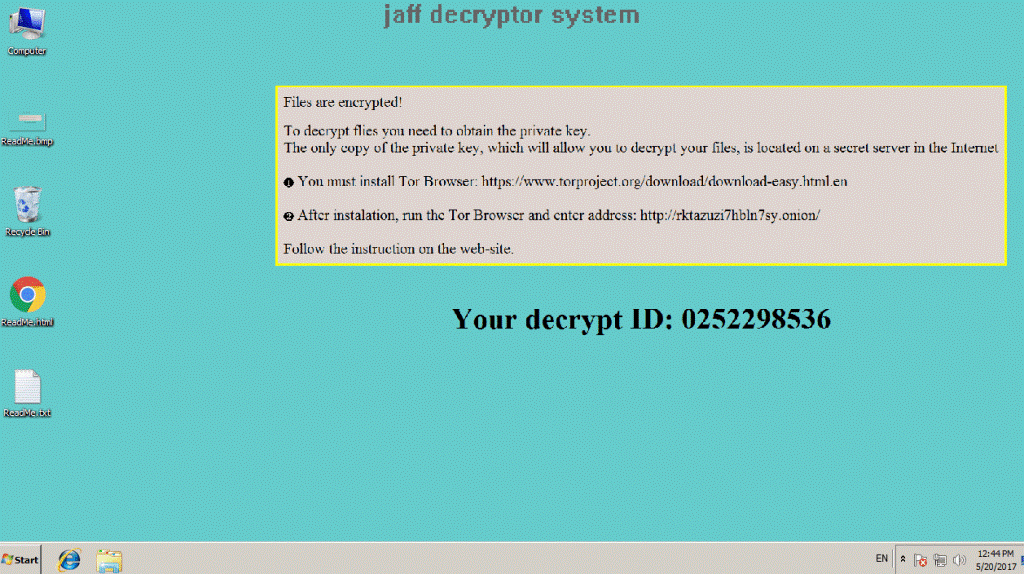 - Encrypted files with extension “.jaff”