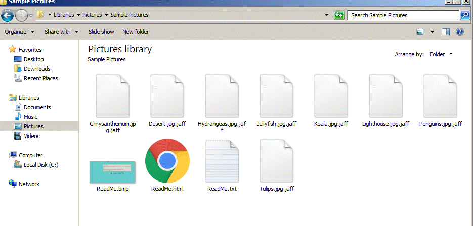 Once the file is encrypted, it adds the “.jaff” extension to the filename.